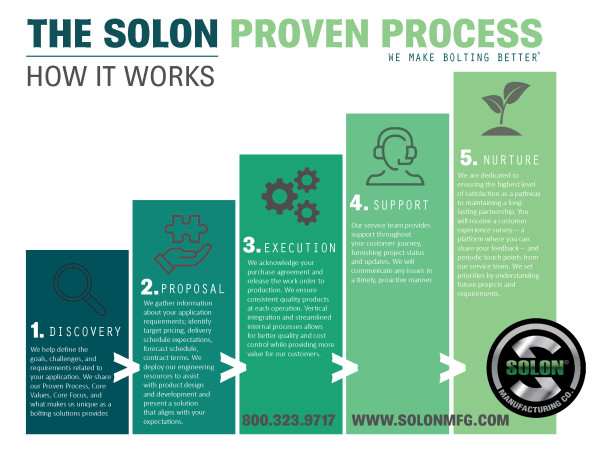 Solon’s products are engineered to solve complex bolting challenges in critical applications. Customers choose Solon Manufacturing because we deliver:- Proven clamp load retention